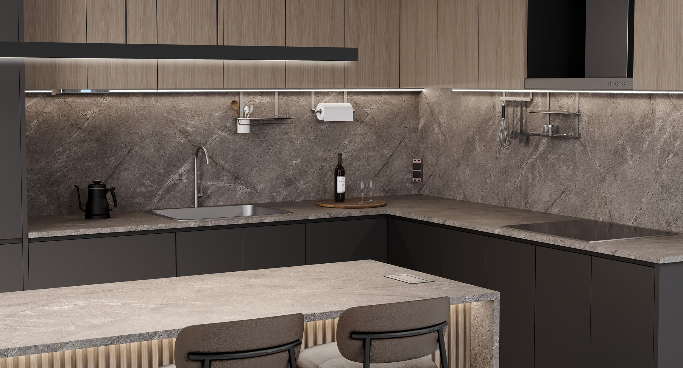 최대 2300mm 연결가능 LED 주방하부조명 (샴페인골드/건그레이) ZL-300EX
