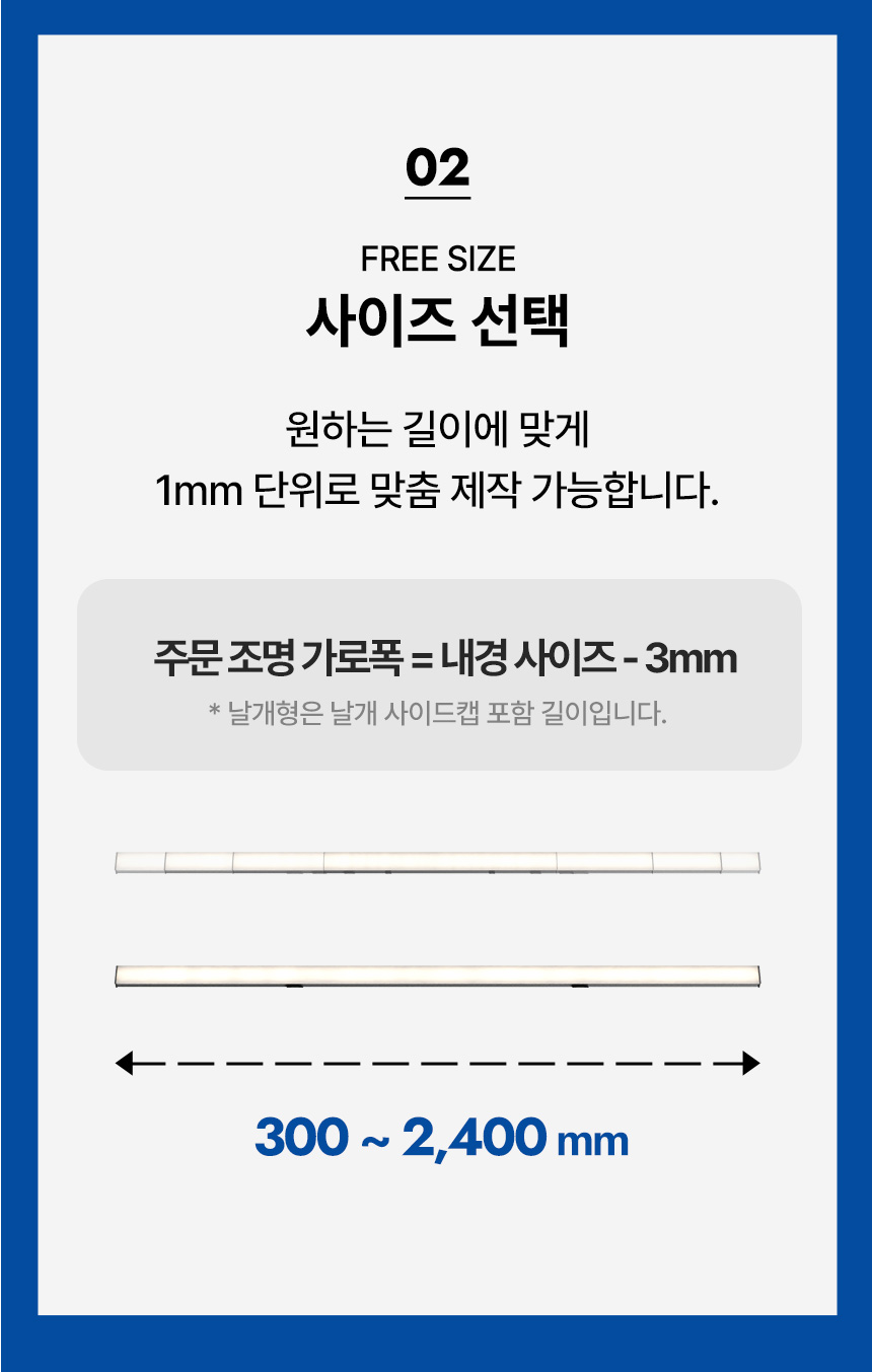조명 상품은 주문 후 제작 상품으로, 주문일로부터 2일 이내 출고됩니다.(주말 및 공휴일 제외) 시공 일정에 차질이 없도록 여유 있게 미리 주문해 주시기 바랍니다.