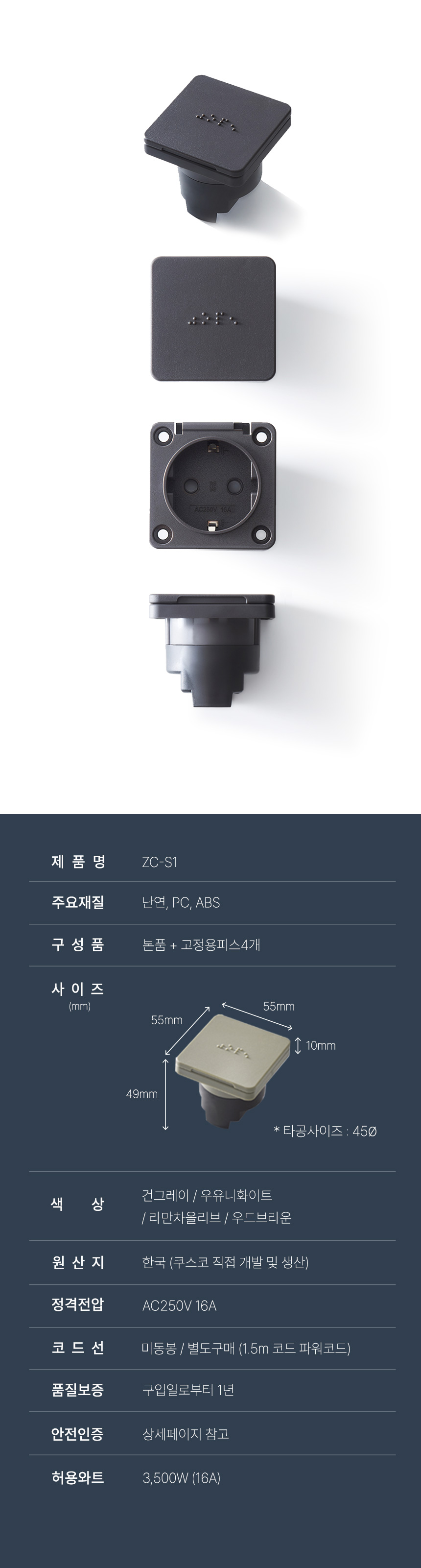 콘센트 제품과 같이 주문하시면 끝가닥 선 사양이 1가닥으로,