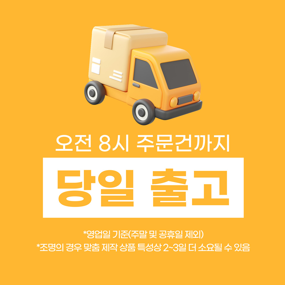 조명 상품은 주문 후 제작 상품으로, 주문일로부터 2일 이내 출고됩니다.(주말 및 공휴일 제외) 시공 일정에 차질이 없도록 여유 있게 미리 주문해 주시기 바랍니다.